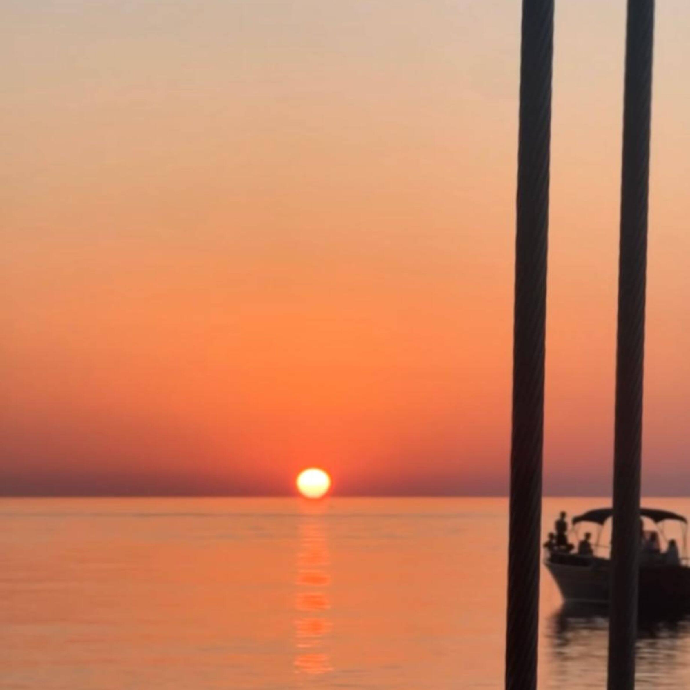 From the cliffs of Pollara, the sun sinks directly into the horizon, painting the sky in impossible shades of orange, pink, and violet. The view takes in the silhouette of Filicudi in the distance, and for a moment it feels like the whole world has paused.